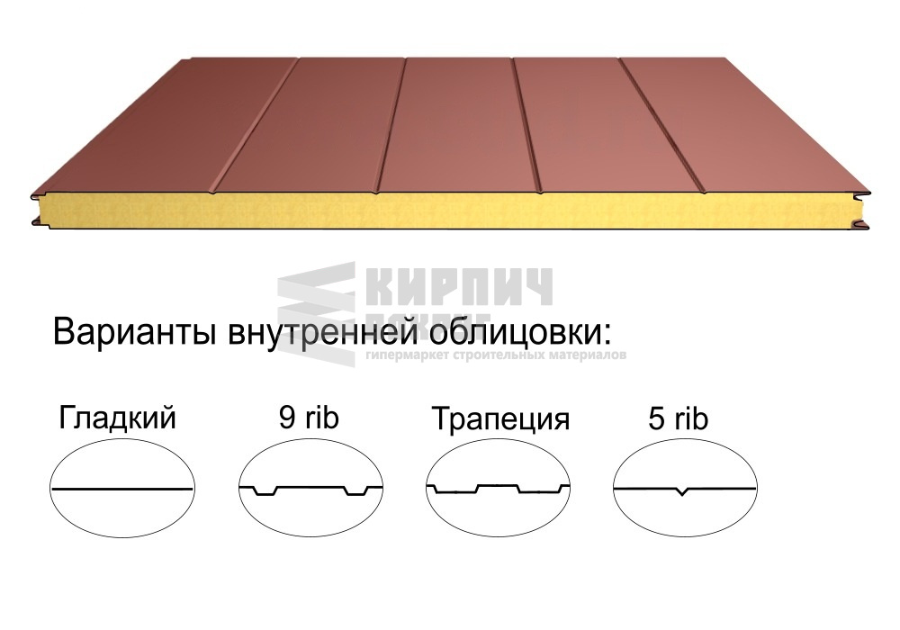В интернет-магазине "Кирпич Вокруг" Вы можете купить Стеновая трёхслойная сэндвич-панель 5 rib 100мм 1000мм с видимым креплением минеральная вата Полиэстер Доборник в Тольятти, а наши специалисты готовы вам помочь с выбором по адресу: , или оказать консультацию по телефону: .